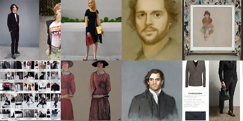 The first line produces a broad, uninfluenced impression of what is most common for that artist (landscape, person, etc.).